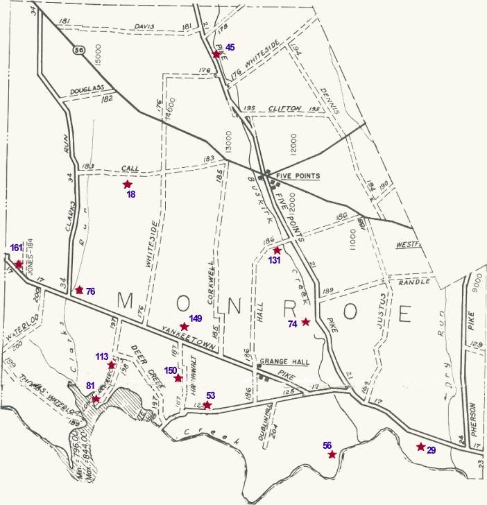 18 | Calls, Joe Farm | Monroe | .1 m South T-183; .5 m West T-176 |