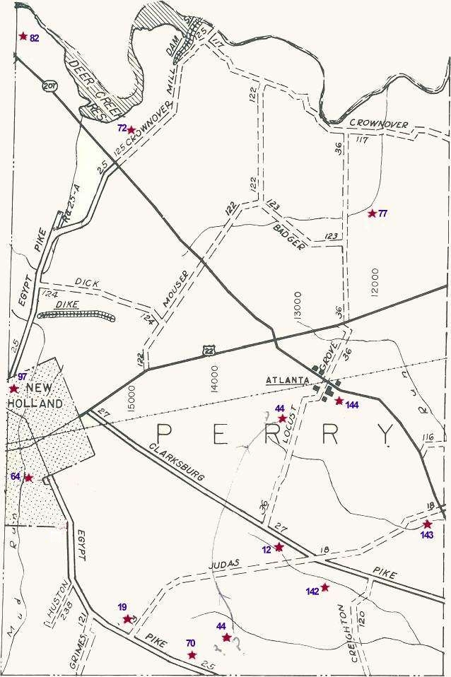 97 | New Holland | Perry | on T-25 (Main St./Egypt Pike); .5 m North of New Holland |